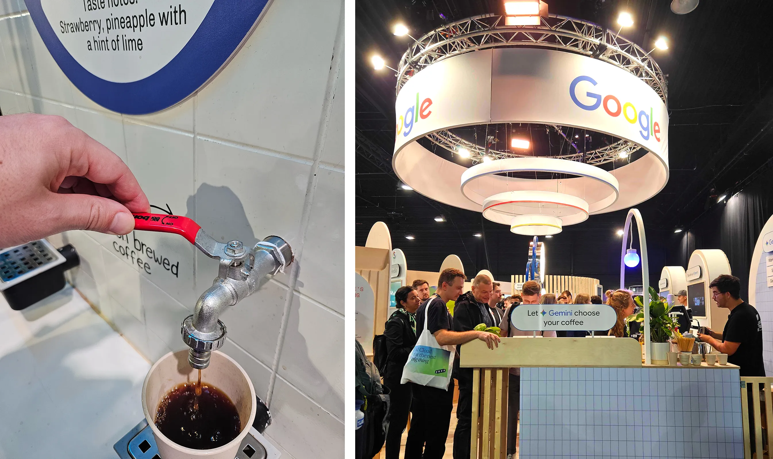 As mentioned earlier, “Unlocking business potential” or “embedding AI responsibly” could have been Google’s event strategy today as well. I mean all other huge players chose that approach. But Gemini’s coffee advisor was a constant crowd magnet, with long queues forming all day long, while there were some other pretty good options to get your caffeine dose. (what’s even a dose when it’s on the tap like this?)