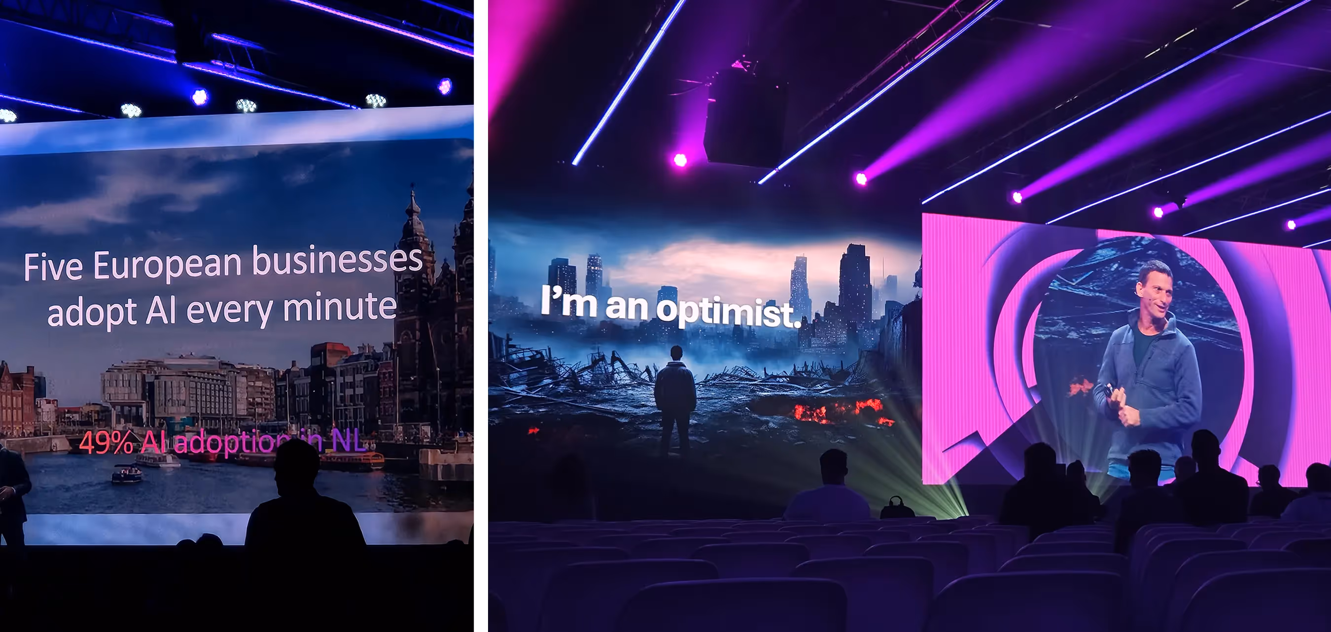 While we are at the keynote from AWS, there was this staggering data point: 49% of companies in the Netherlands already use AI, the rest 51% don’t. Five new EU businesses adopt AI every minute. This realization fits with the notion that tech founders always feel behind and too late to the party, while the reality is that they are always at the front, and just in time. That feeling of being behind actually urges to push forwards, to be even more in front. This 51% of companies in the NL can mean many good things: opportunity for your consultancies and AI adoption services, weaker competition, chance to define new markets, but most importantly: a huge confidence boost to start and keep building.
